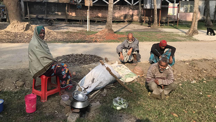 খোলা আকাশের নিচে প্রতিবন্ধী স্বামী, ছেলে ও নাতিকে নিয়ে আছিয়ার বাস