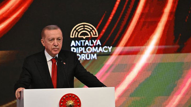 শুক্রবার আন্টালিয়া ডিপ্লোম্যাসি ফোরামের (এডিএফ) ভাষণে প্রেসিডেন্ট এরদোগান এমন মন্তব্য করেন। এ সময় তিনি কূটনীতিকে কোনো সংঘাতের সমাধানের সর্বোত্তম হাতিয়ার হিসাবে উল্লেখ করেন। তবে সংঘাত সমাধানের ক্ষেত্রে কূটনীতি ছাড়াও অনেক ক্ষেত্রে সরাসরি হস্তক্ষেপের প্রয়োজন হয় বলেও জানিয়েছেন তিনি।