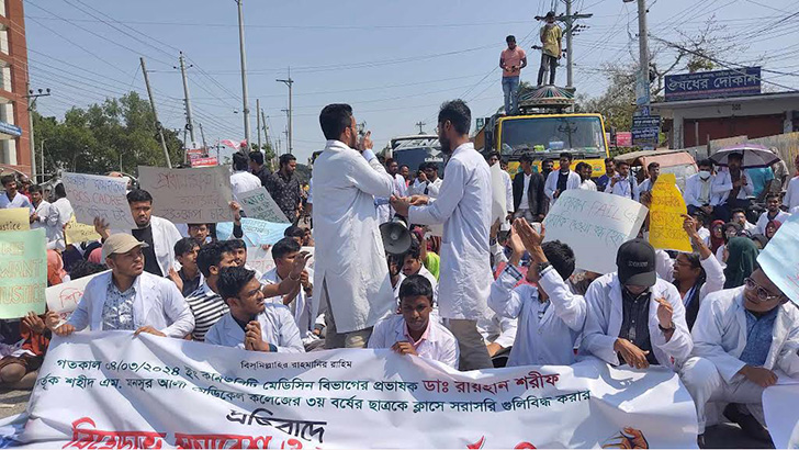 ছাত্রকে গুলি করা সেই শিক্ষকের শাস্তি দাবিতে বিক্ষোভ