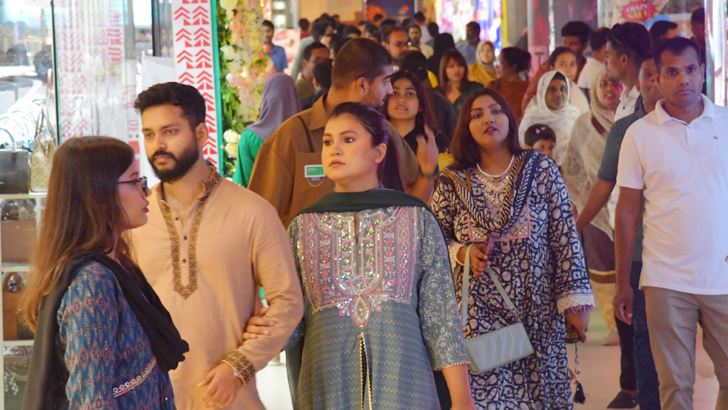 ঈদের আর মাত্র ৫ দিন বাকি। শেষ মুহূর্তে কেনাকাটা করতে মানুষের ঢল নেমেছে দক্ষিণ এশিয়ার সর্ববৃহৎ শপিংমল যমুনা ফিউচার পার্কে। এখানে দেশি-বিদেশি সব ব্র্যান্ডের পণ্যের সমাহারে কেনাকাটায় সুবিধা বেশি থাকায় ক্রেতাদের প্রথম পছন্দ। তাই সাপ্তাহিক ছুটির দিন শুক্রবার সকাল থেকেই আসতে থাকেন ক্রেতারা। বিকাল নাগাদ লোকে লোকারণ্য হয়ে ওঠে এর চারপাশ। সন্ধ্যার পর ভিড় আরও বাড়ে।
