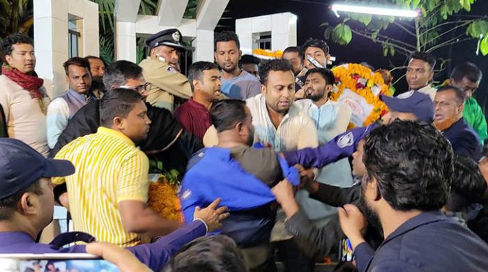 মাদারীপুরের রাজৈরে আন্তর্জাতিক মাতৃভাষা দিবস উপলক্ষ্যে শহিদ মিনারে ফুল দেওয়া নিয়ে ছাত্রলীগের দুই গ্রুপের মধ্যে হাতাহাতি ও ধাক্কাধাক্কির ঘটনা ঘটেছে। মঙ্গলবার রাত ১২টা ১ মিনিটের পরে উপজেলা চত্বরের কেন্দ্রীয় শহিদ