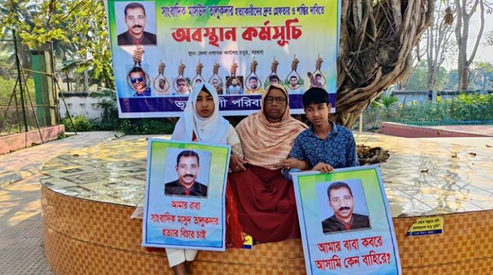 বরগুনার সাংবাদিক তালুকদার মাসউদ হত্যার ঘটনায় মামলার এক সপ্তাহ পার হলেও কোনো আসামি গ্রেফতার না হওয়ায় ‘অবস্থান কর্মসূচি’ পালন করছে নিহতের পরিবার। মঙ্গলবার সকাল ৯টা থেকে বরগুনা জেলা প্রশাসক কার্যালয়